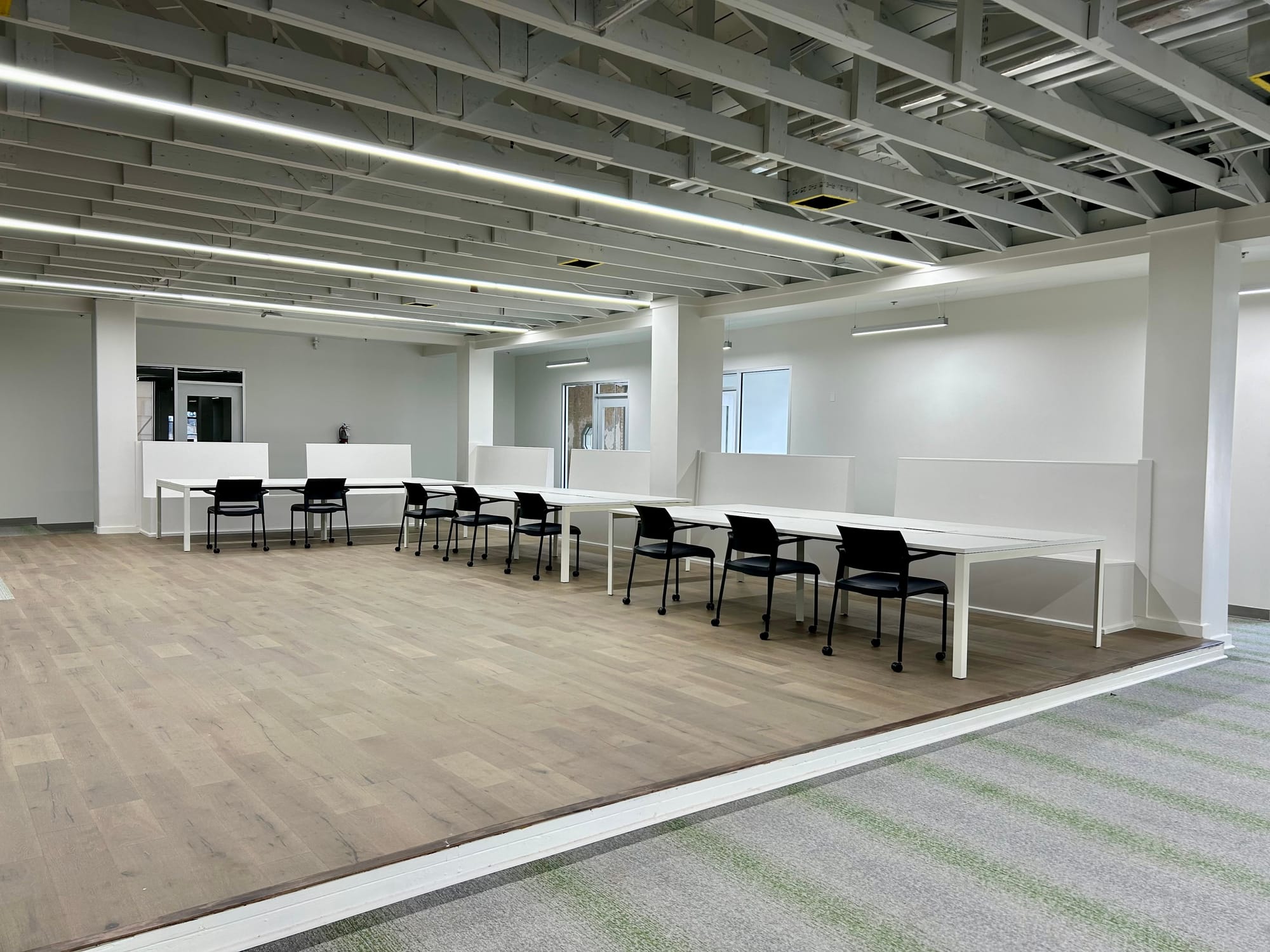 - 2 large conference tables or rowed seating